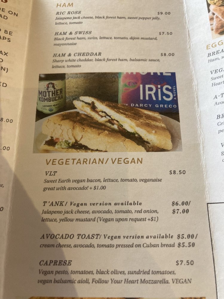 The menu also features inviting salads—such as the Cafe Salad—and unique soups like the traditional Hoppin Johns, making it a well-rounded destination for tasty meals.